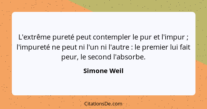 L'extrême pureté peut contempler le pur et l'impur ; l'impureté ne peut ni l'un ni l'autre : le premier lui fait peur, le second l'absorbe.
