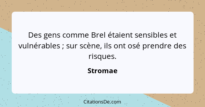 Des gens comme Brel étaient sensibles et vulnérables ; sur scène, ils ont osé prendre des risques.