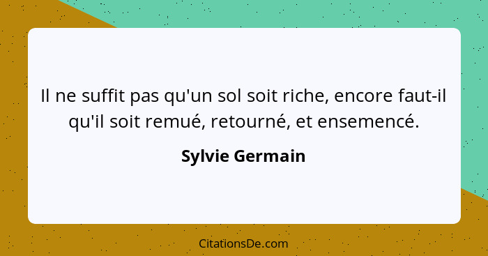 Il ne suffit pas qu'un sol soit riche, encore faut-il qu'il soit remué, retourné, et ensemencé.