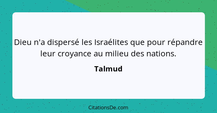Dieu n'a dispersé les Israélites que pour répandre leur croyance au milieu des nations.