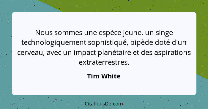 Nous sommes une espèce jeune, un singe technologiquement sophistiqué, bipède doté d'un cerveau, avec un impact planétaire et des aspirations extraterrestres.