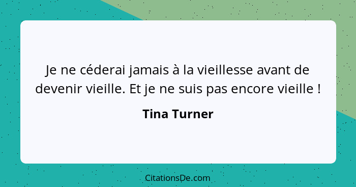 Je ne céderai jamais à la vieillesse avant de devenir vieille. Et je ne suis pas encore vieille !