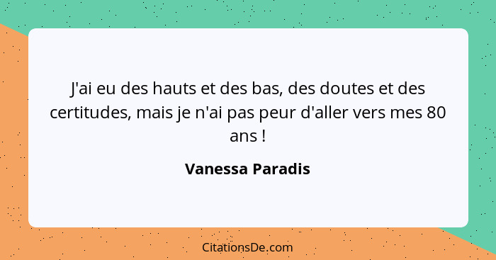 J'ai eu des hauts et des bas, des doutes et des certitudes, mais je n'ai pas peur d'aller vers mes 80 ans !