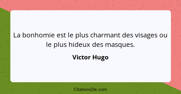 La bonhomie est le plus charmant des visages ou le plus hideux des masques.