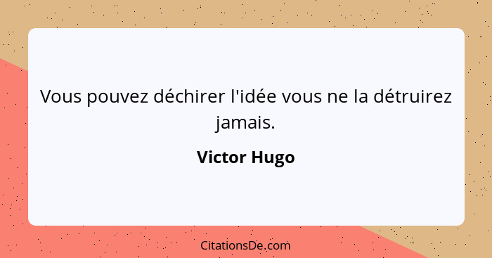 Vous pouvez déchirer l'idée vous ne la détruirez jamais.