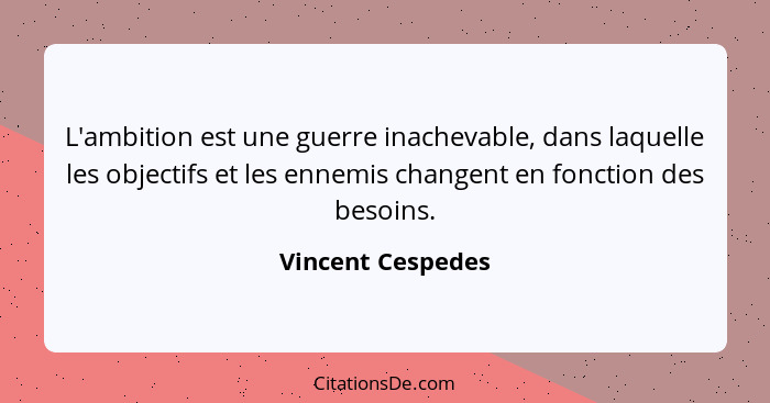 L'ambition est une guerre inachevable, dans laquelle les objectifs et les ennemis changent en fonction des besoins.