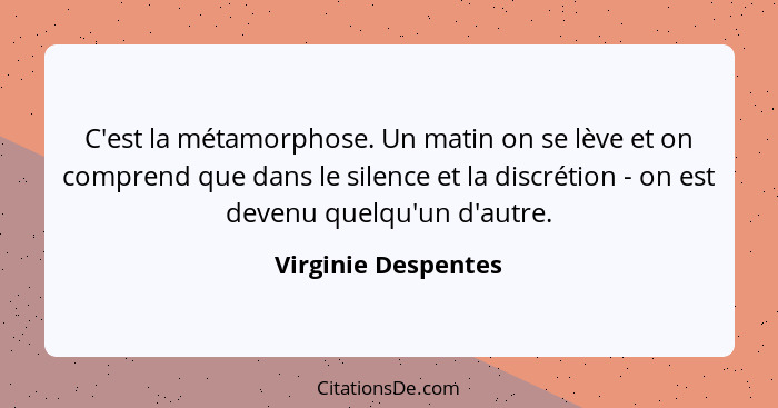 C'est la métamorphose. Un matin on se lève et on comprend que dans le silence et la discrétion - on est devenu quelqu'un d'autre.