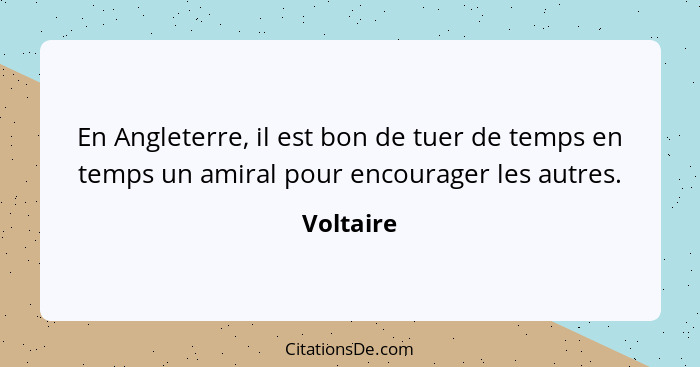 En Angleterre, il est bon de tuer de temps en temps un amiral pour encourager les autres.