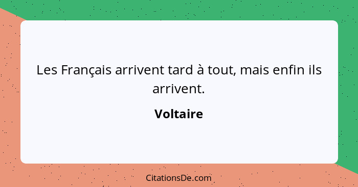 Les Français arrivent tard à tout, mais enfin ils arrivent.