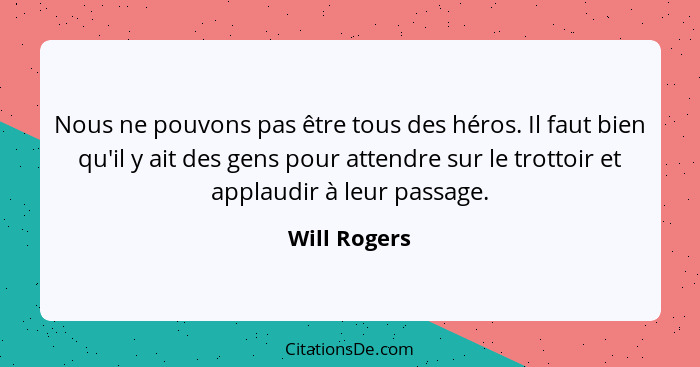 Nous ne pouvons pas être tous des héros. Il faut bien qu'il y ait des gens pour attendre sur le trottoir et applaudir à leur passage.