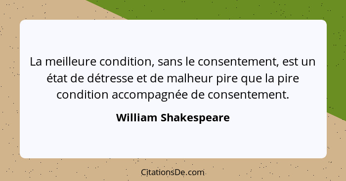 La meilleure condition, sans le consentement, est un état de détresse et de malheur pire que la pire condition accompagnée de consentement.