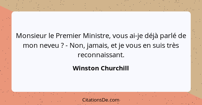 Monsieur le Premier Ministre, vous ai-je déjà parlé de mon neveu ? - Non, jamais, et je vous en suis très reconnaissant.
