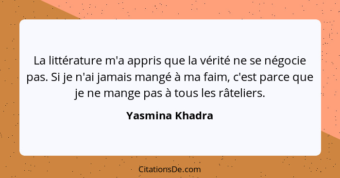 La littérature m'a appris que la vérité ne se négocie pas. Si je n'ai jamais mangé à ma faim, c'est parce que je ne mange pas à tous les râteliers.