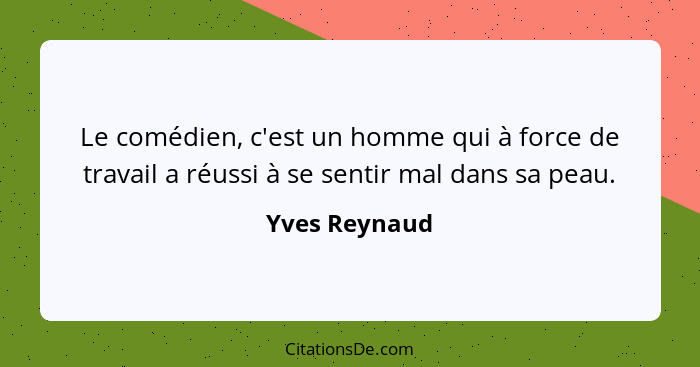Le comédien, c'est un homme qui à force de travail a réussi à se sentir mal dans sa peau.